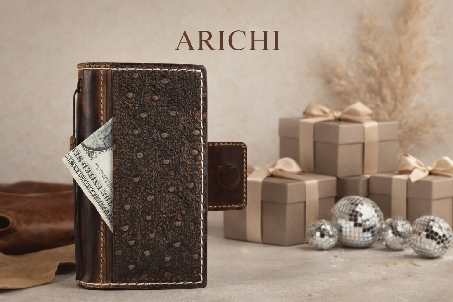 ARICHI Genuine Leather Wallet Case for iPhone – Premium Vintage Book Style with Card Slots