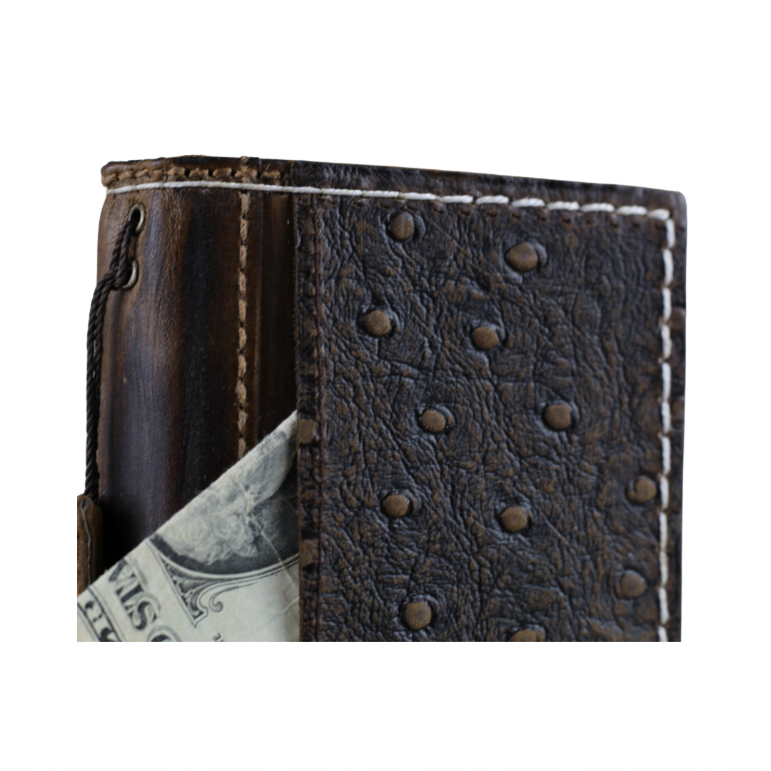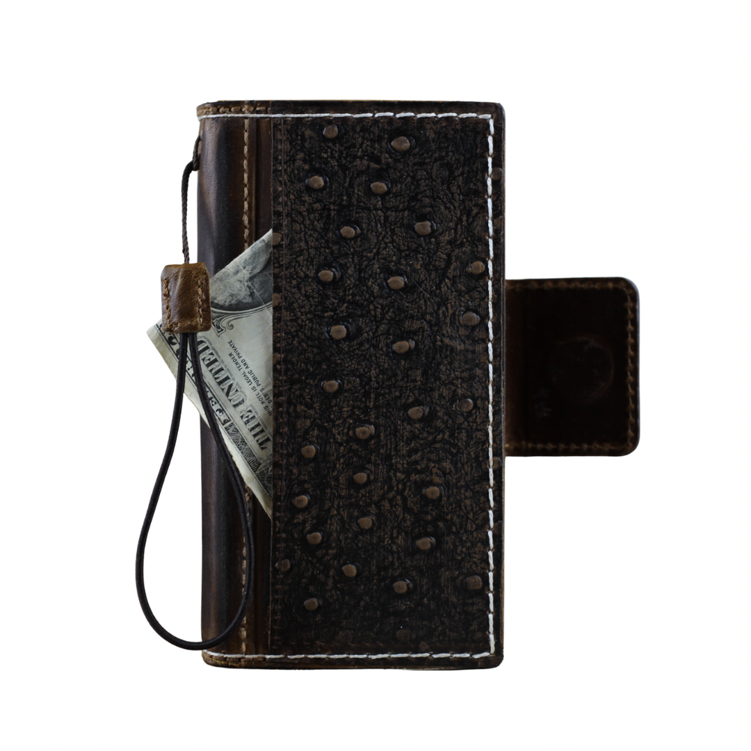 Genuine Ostrich-Embossed Leather Phone Case with Card Slots – Handmade Luxury Leather Cover with White Stitching